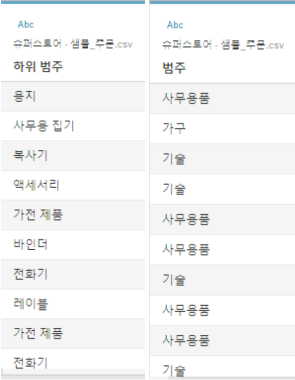 사용자 지정계층을 만드는 방법은 계층화를 원햐는 두 데이터를 합쳐주고 계층의 이름을 입력하면된다. 합쳐줄 데이터는 하위범주와 범주 데이터인데, 범주 중에서 사무용품이면서 용지인것, 사무영품이면서 레이블인것 이렇게 그룹으로 묶여 계층화가 진행된다고 보면 된다.