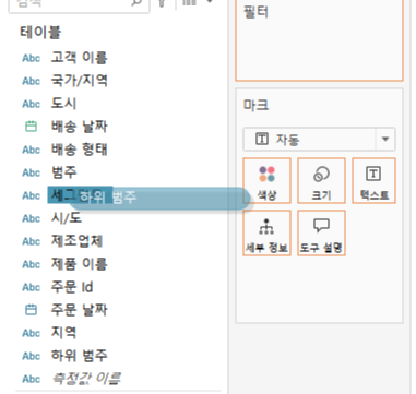 현재 데이터의 범주 안에서 매출이 높은 순서대로 정렬하고싶다면 정렬하고싶은 값에서 정렬 필드를 합계로 바꿔주면